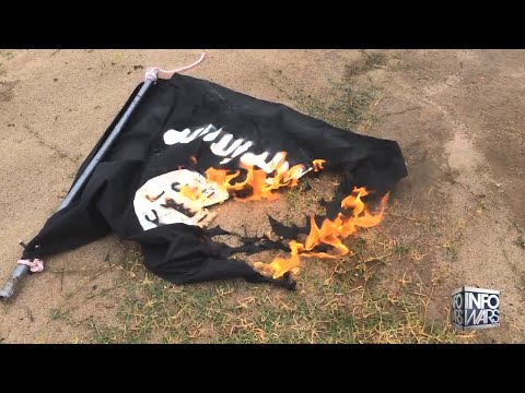 Anti-Islamic State protesters speak out – burn the Jihadi flag!