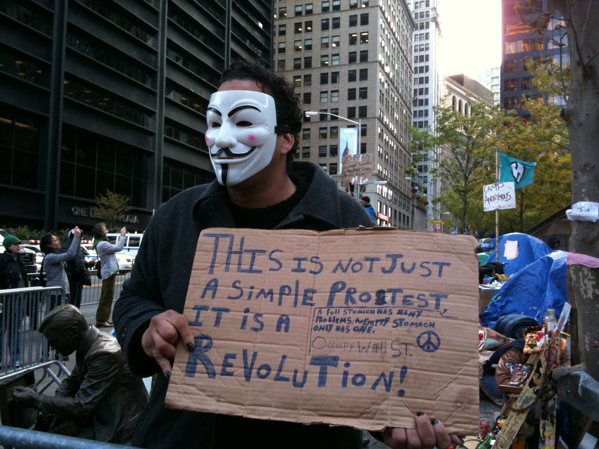 Students protest capitalism wearing the mask from the movie, “Vendetta,” an anti-Christian movie that depicts the church as Nazis and their sanctum in the shape of a cross being destroyed. Colleges and the environmental movement have become the homes of anti-American, anti-Christian socialism that include actual Nazism, Communism, Fascism, Islamism, and atheism. Their only agenda is the destruction of America and all it represents, which is the Obama/Democrat agenda of deconstructing America to remake it into a socialist dictatorship.