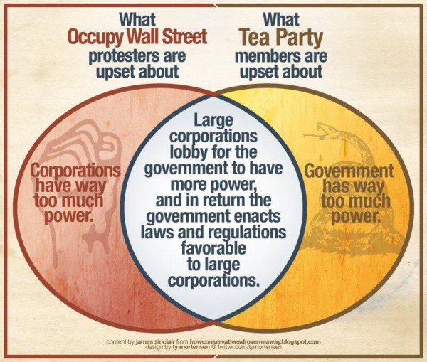 The Left has it wrong that corporations have so much power that they run government as an oligarchy. It is the government that has been corrupted to bank for corporations rather than restrict them. This is what happens when voters believe what politicians say rather than watch what they do. Democrats are not for the little guy and Republicans are not only for the rich.