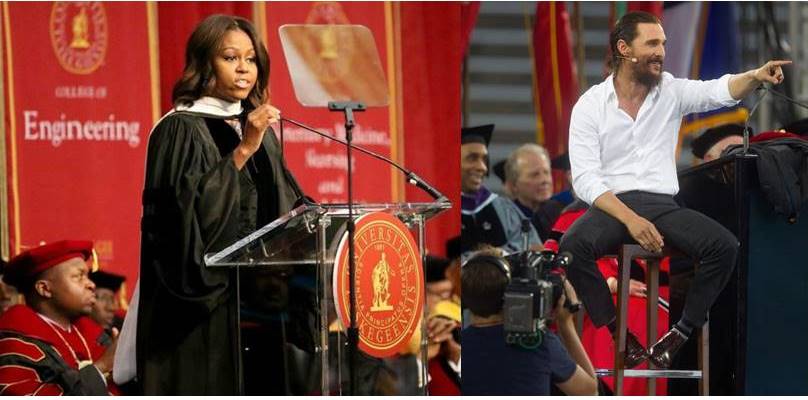 It’s graduation season for millions of students eager to start living the American Dream. At two universities, two opposite messages were delivered to graduates by two opposite personalities. FLOTUS Michelle Obama treated Tuskegee graduates to the Obama brand of Americanism, while in Houston actor Matthew McConaughey told graduates exactly what they needed to hear.