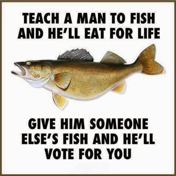 - “Give a man someone else’s fish and he’ll vote for you.” – liberals