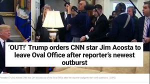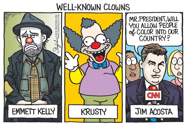 President Trump ousted CNN’s Jim Acosta from a White House briefing yesterday for heckling him again. The last time Acosta heckled him to answer a bogus question to which Trump responded, “You’re fake news.” Liberals believe their lies and abuses are protected by the 1st Amendment guaranteeing freedom of the press. That doesn’t mean they are free to lie and slander as they please. Flake and Acosta, et al, accuse Trump of being a Stalinist. If that were true then Acosta would be hanging from a tree right now.
