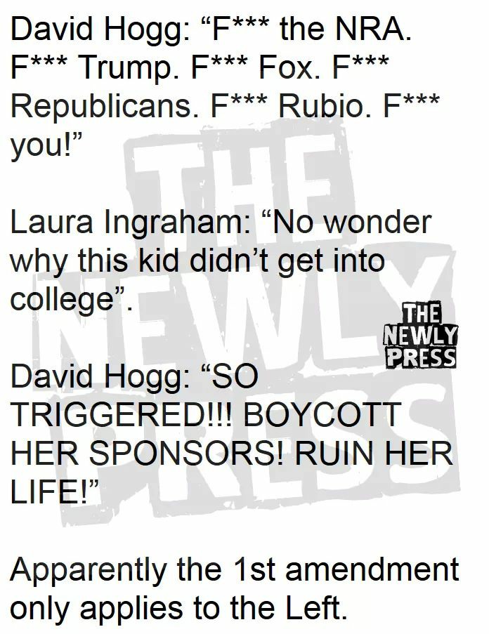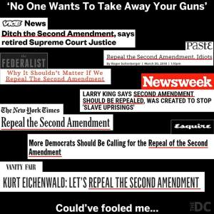Every time there is a mass shooting the Left comes out screaming for the 2nd Amendment to be taken away and lawful citizens to be disarmed. The result is an increase in support for the Amendment and the NRA that is villainized. What do Democrats then do? They declare that mass shootings cause people to buy more guns, obviously because Republicans are all mass murderers who want to be armed to kill a bunch of helpless people. Every mass shooting has been committed by leftists just as every genocide in history has been. They never call for criminals to be disarmed because obviously taking guns off the streets would work as well as taking drugs off the streets. Instead they call for good people to be disarmed. The only reason to do this is so Democrat socialists can seize power without fear of the populace rising up against them. After screaming that they want to repeal the 2nd Amendment for the past two months, now that they are getting blowback from righteous citizens they are trying to back pedal and claim they haven’t been doing what they’ve been doing. They think if they can fool enough people into giving up some of their rights a bit at a time they can eventually have it all. Democrats want to lower the voting age to 16 to allow these ignorant, indoctrinated children to have power over adults. The voting age should be raised to 21 unless they serve in the military where they learn responsible maturity. So long as the Left can indoctrinate glittering jewels of colossal ignorance like their new anti-armed citizen mouthpiece, David Hogg, the Left will continue to tear down America by keeping the borders open to import cheap labor, and keeping the minds of young people closed until their freedom is gone and they wake up to their mistake too late.