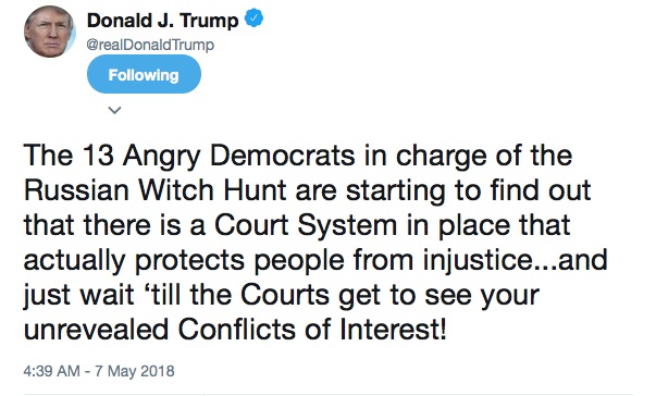 Mueller is running into judicial roadblocks of his witch-hunt to destroy Trump supporters. His repeated violations of their 4th Amendment rights is headbutting with a constitutional judge. Mueller’s persecutions have been bankrupting Trump supporters with trumped up charges like charging Gen. Flynn with lying to the FBI when none of his interviewers said he lied. Now Mueller is judge shopping trying to find a liberal judge who will throw out the Constitution and make law from the bench. Both the judge and Congress are demanding Mueller and Rosenstein provide full disclosure of their cases and they are refusing. This is unquestionably a violation of the law! Millions of Americans have been calling for this witch-hunt to be ended and for investigations to be opened into the known violations of Democrats who must be held accountable for their crimes. If President Trump cannot force the swamp rats out and get Republicans who will support his initiatives to root out Washington corruption he may be ousted in the next election.
