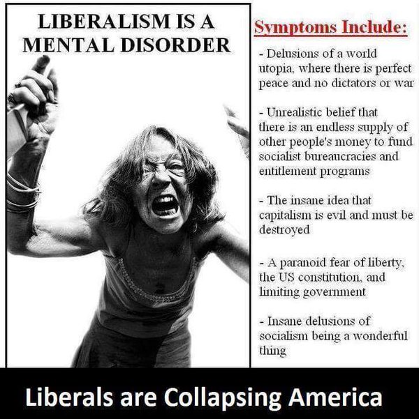 The mental disorder of liberalism is becoming more and more violent as young skulls full of mush are filled with delusions of righteousness fighting evil. Millions of Americans are infected with the sickness of liberalism. Not just the sickness of greed and envy, not just the sickness of self-righteous hypocrisy, but the sickness of delusional hate. Liberalism is the ideology of believing in lies to the point of being willing to murder people over them. This is Islamism wherein some distant sociopathic Islamist will murder a nearby innocent person, believing they are justified because they somehow associate them with a story they heard about some distant person that they hate.