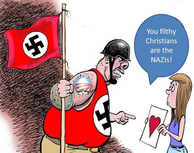 This entire episode is not about truth, quality, or facts. This is not just about dirty politics. It’s about leftist Nazis vs. righteous Christians with the Nazis believing they are acting as Christians and that the Christians are the Nazis. It is the mirrored world of liberal delusions and there is no escape for the mindless control freaks immersed in them. There is only their rage and hate and the violence that comes of it. When a righteous person tries to explain the truth to them they respond by declaring that person has no right to free speech. This is the evil that America is up against and will either beat down in November or be consumed by.
