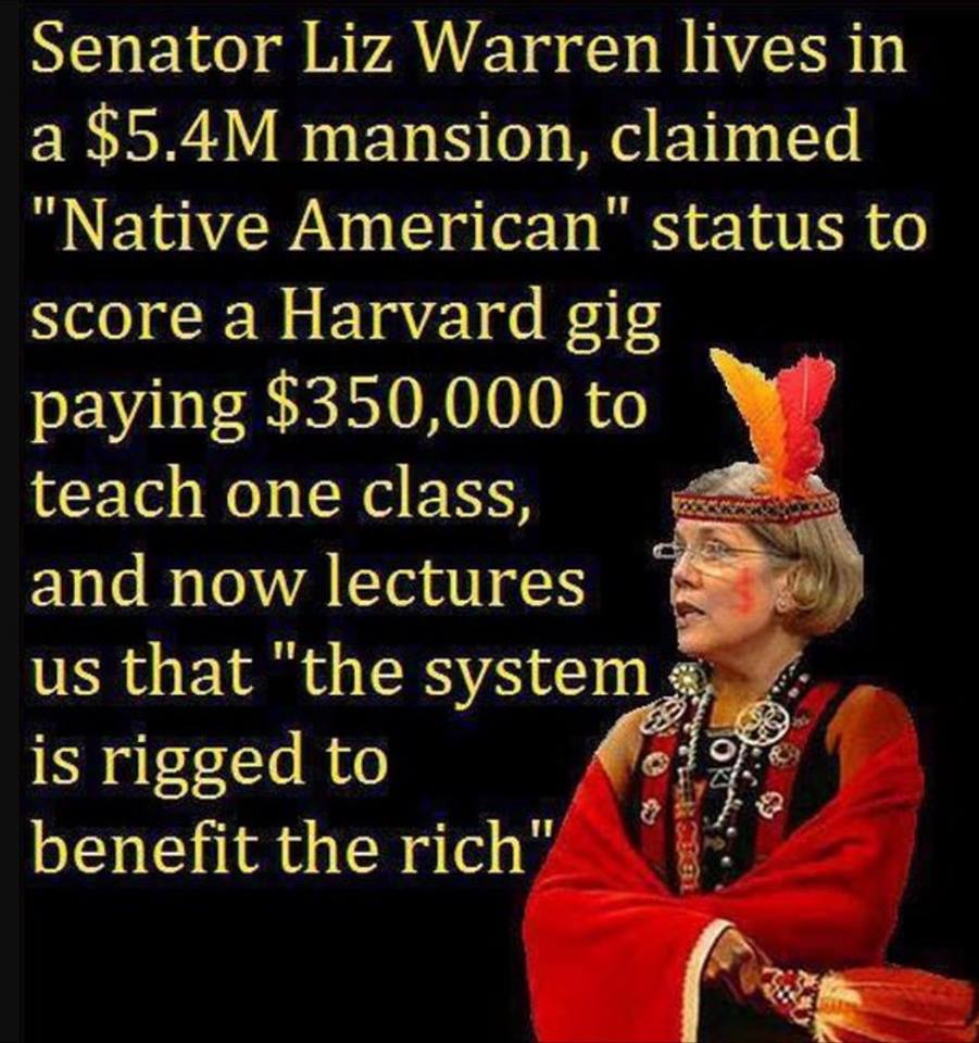 Liberal beliefs are as tenuous as their belief that Elizabeth “Pocahontas” Warren is Native America. Massachusetts voters stupidly support her, but that’s no surprise when blue states are making it legal for their criminals and illegal aliens to vote. I am far more native than she when I can definitively say my grandfather’s grandmother was a Cherokee making me 6% native American by Ancestry’s DNA test. Warren’s DNA test came out with something like .09%. The average American is .18% which makes her whiter than most. But she presented herself to Harvard as native. Some colleges require 25% and a few only 1/16th. So, I qualify for Native American along with everyone in my family, while Warren who, even if the one liberal liar that claims she is 1/32nd native is right, still doesn’t qualify her making her just another Democrat fraud. You don’t get a check from President Trump for your pretenses on having a few drops of native blood and falsely claiming yourself as a native American.