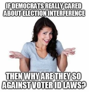 Just as Democrats conflate legal immigrants with illegal aliens, they are confusing legitimate votes with their fraudulent votes. America needs to secure the vote through super strict voter laws. Change the voting age to 25 except for 21-year olds with full time jobs and 18-year olds in military professions; armed forces, law enforcement, fire-rescue. Require only and all legal citizens registered to vote to have Voter ID including picture and thumb print. When ballots are cast the machine must recognize the thumbprint match and put thumbprints on the matching ballot. No more voter fraud!
