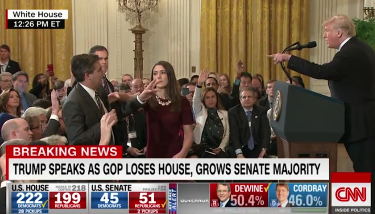 CNN’s Jim Acosta, who has repeatedly been abusive to Trump and his press secretaries, assaulted a Trump aide as she was trying to get back the president’s microphone during his diatribe against Trump at the post-election press conference. The violator declared his innocence while slandering Trump as shutting down the “freedom of the press” as if he, personally, is the media. His White House press pass has at long last been suspended but needs to be revoked permanently to keep this nasty propagandist away from decent people. If his claims that Trump was a dictator shutting down the free press were true, then he would already be under the prison rotting as he deserves!