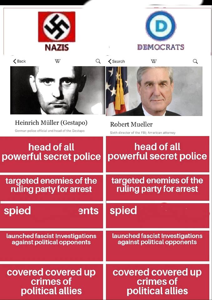 So, why is President Trump not investigating what we know are the crimes and treacheries of Obama and Hillary?  I want an answer, Mr. President.  You have my complete loyalty in beating back the forces of darkness.  But my faith is wavering in the shadow of Mueller exercising Gestapo tactics against Trump supporters with impunity.  This Robespierre must be brought to justice for his persecutions of Trump supporters.  Gen. Flynn is one of America’s greatest modern generals, yet Democrats have been permitted to ruin him.  Manafort and Stone are both being persecuted in the extreme over lies of them committing crimes of lying to investigators.  There are enough corrupt leftist elements in the FBI and DoJ that America can no longer trust their law keepers.