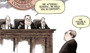 Leftist Democrats don’t seek to uphold the law but break every law from immigration to taxation to voter registration.  Their efforts to overthrow Trump by impeaching him when he has committed no crimes throughout his life is their revenge for the impeachment of Clinton and holding Holder in contempt for their violations of the law.  Everything for which they stand is based on their lies.  They say Clinton was impeached for having sex in the Oval Office with an intern when he was actually impeached for lying under oath and witness tampering.  Like Holder, he is irrefutably guilty while Trump and Barr are as guiltless as any innocent black man railroaded by rednecks.  President Trump would be entirely justified in invoking Executive Privilege over the entire Mueller investigation since it was all about him.