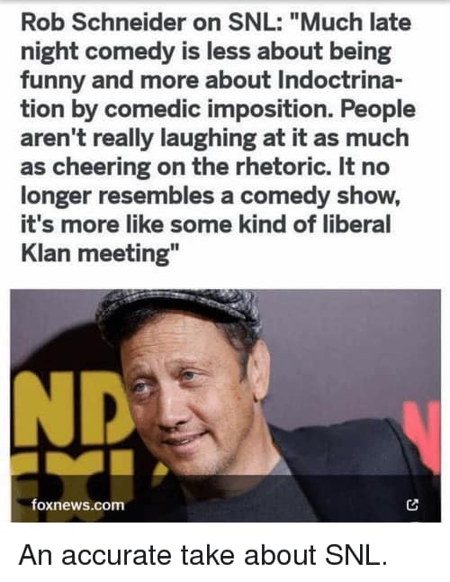 The crisis is late night hate pretending to be comedy whose laugh lines are all based on mocking and hating Republicans.
