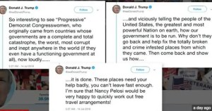 The big dust up over the weekend was over a Twitter war between Trump and Democrat America haters led by AOC and her gang of three. This resulted in Democrats saying President Trump was being a typical old racist who told those “Democrats of color” to “go back to where they came from,” but when reading what he actually said proves their screeching their typical twisted lies. It was actually those very Democrats who told the rest of the nation that if they aren’t part of their cabal then they are racist scum – especially those who are black not being black enough for them if they like Trump.