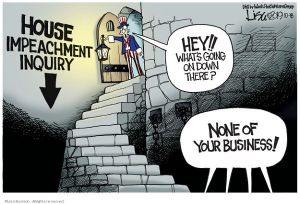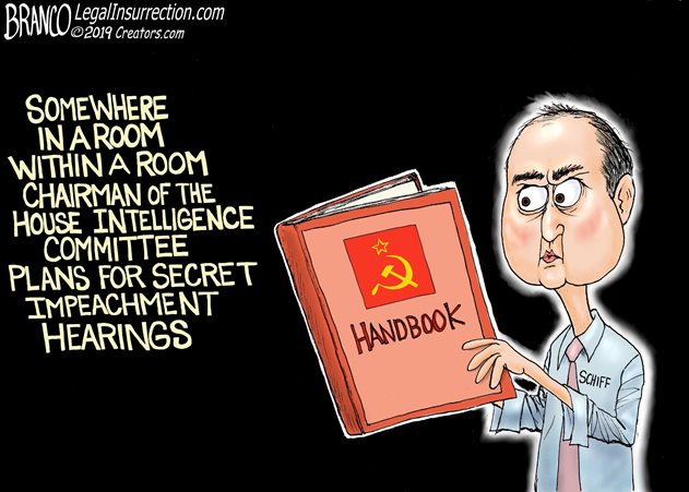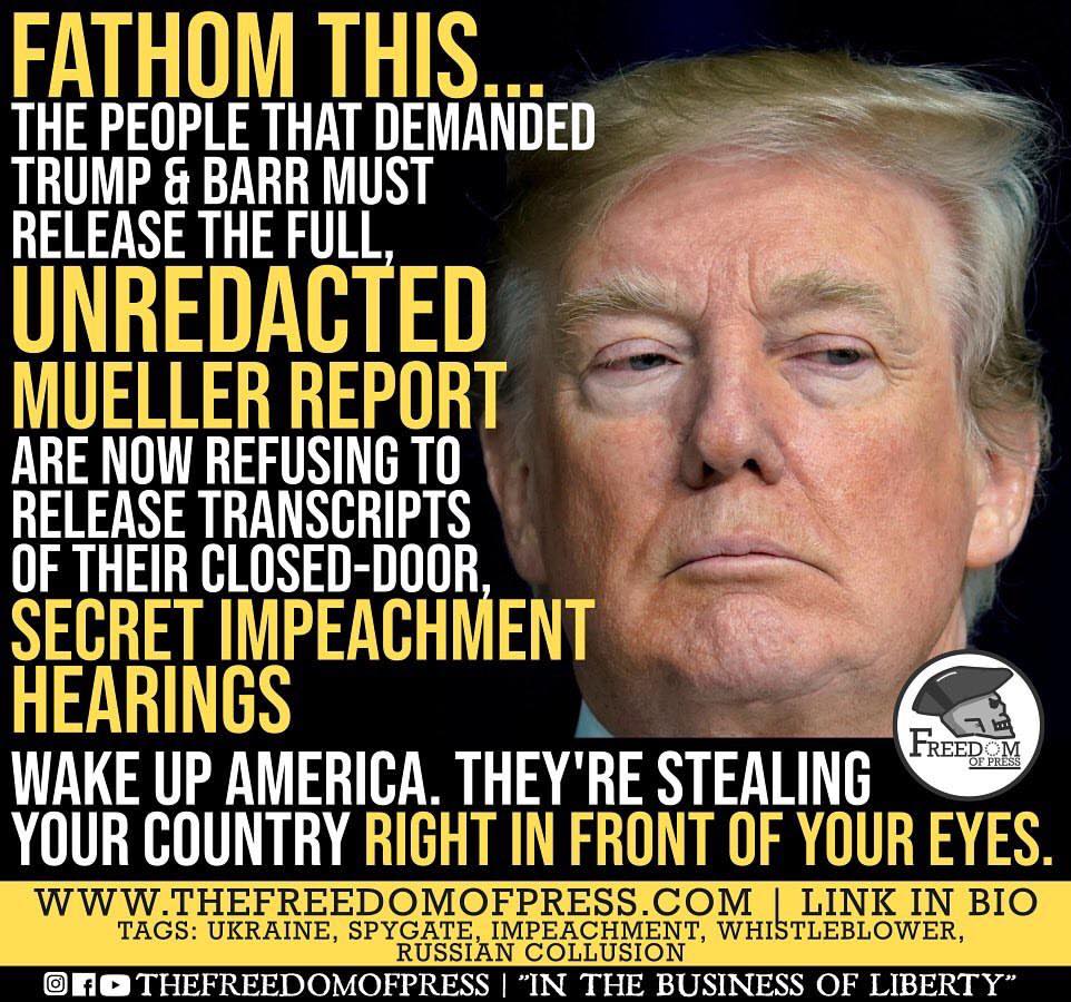 Democrats, led by Pelosi and Schiff, are conducting another coup attempt via Star Chamber justice. This is not justice. This is subterfuge, subversion, and propaganda through leaks and lies. We have laws against all of these when citizens perform these actions. But Democrats have made themselves in Congress exempt from laws. That’s why they get away with insider trading, slander, and undermining the Constitution. When they claim they are upholding the law is when they are breaking the law.