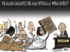 In the Trump impeachment trial, Democrats have had nothing new to say besides that which they say in their daily speeches to the people slandering Trump and demonizing Republicans.  Spending three days repeating each other with the same opinions and admonishments without presenting a single convicting fact by which to impeach Trump was an exercise in tedium.  Leftist media’s raving over them is similar to efforts by the Academy of Motion Pictures giving Oscars to crappy films to overcome their box office failures.  Republicans gave a quick summary of exculpatory evidence proving that President Trump is still the subject of a witch hunt by Democrats enacting a coup rather than a Constitutional defense of the people.