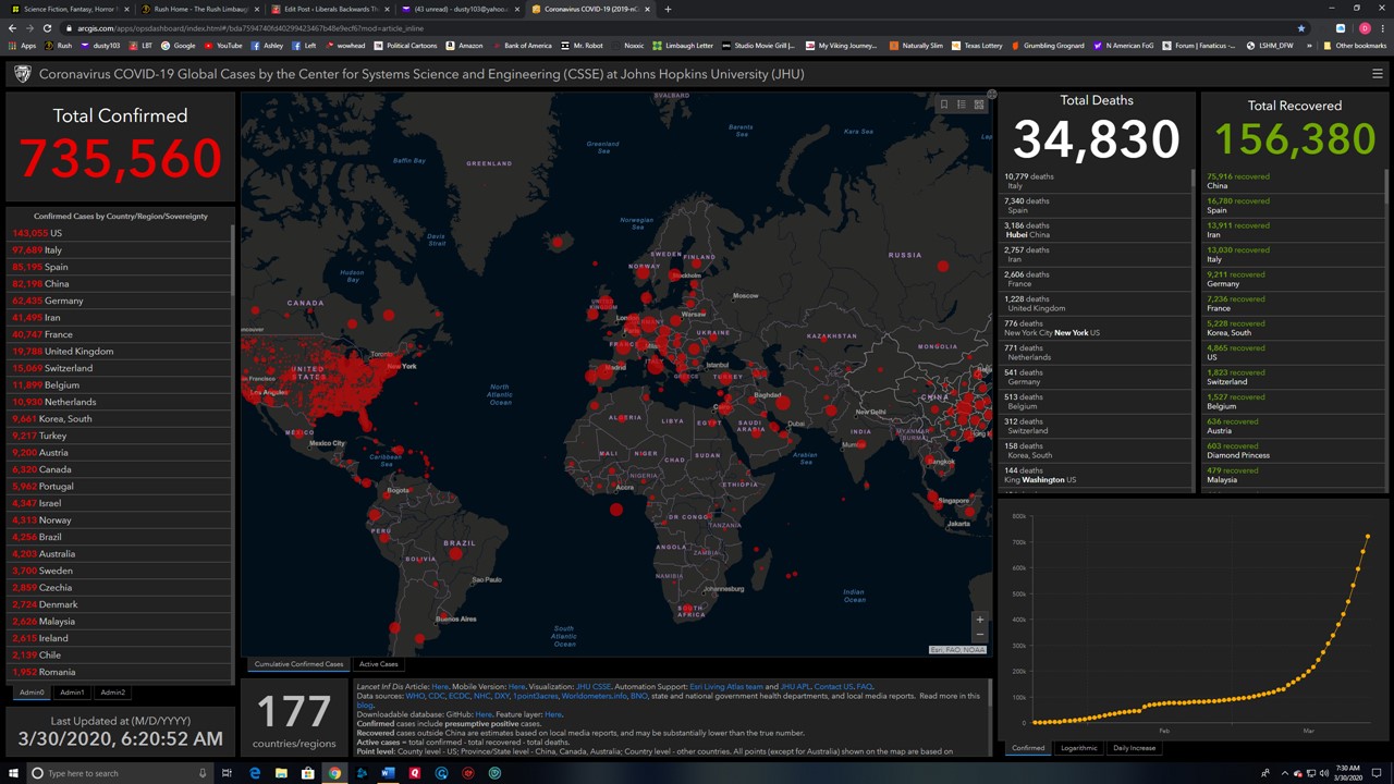 Reports are saying this is not a weaponized virus. One must wonder if this is true when it is a virus that remains quiescent yet highly contagious for two weeks before becoming volatile in attacking people’s lungs. This is the kind of virus that could kill millions and may well have done so in China. That is the only reasonable explanation why President Trump felt it necessary to shut down our economy to quarantine until treatments and containment are enacted. America now has officially more cases than any country in the world, yet the lowest death rate.
