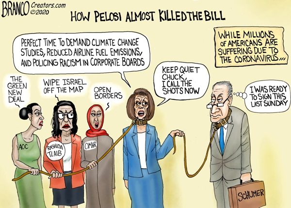 Pelosi said her “Jiujitsu made the bill go from corporate first to worker first.” Horse crap! Republicans wrote all the parts benefiting the people. Democrats say they don’t want Republicans to benefit their cronies the way Democrats did their own in 2009 after they nuked the economy that time. Democrats think their political briefing of Trump are more important than the president’s briefings when all they are is their way of concealing the truth of Trump’s words so they can put words in his mouth by which to damn him.