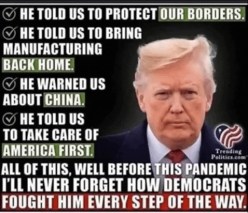 The Chicoms who unleashed this pandemic on the world critically miscalculated. If they did this in revenge for President Trump forcing them into fair trade, they are going to suffer the consequences. Democrats, who tell us every day who they are with their blame and greed, are likewise being exposed as, not only unreliable, but treacherous. All Biden proves is that he is a doddering, little old man trying to stand in Trump’s shadow.