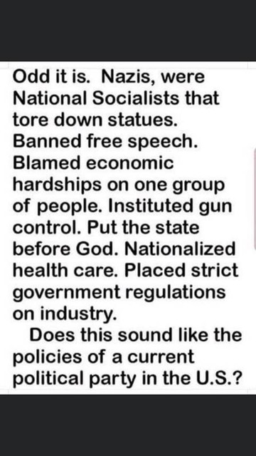 If someone tells you fascism is back in America, who do you think are the fascists? Trump Republicans or Obama Democrats? Do most Americans recognize that the nation is engaged in a civil war and that the fascists are trying to take over? Do most Americans recognize that it is the Democratic National-socialist Communist Party that is engaged in fascist terrorism against citizens? Do the people, at least those who are not brainwashed liberal dupes, realize that the left has been using their propaganda machine to conceal their true nature, but are now out in the open though they still try to claim to be fighting for good? The half of the government run by Democrats is openly encouraging criminals to riot, loot, and burn their cities, cheering those who terrorize the citizenry, instilling bigotry in their base against all white people, and all the while claiming to be the righteous? How easy it is to dupe a liberal.