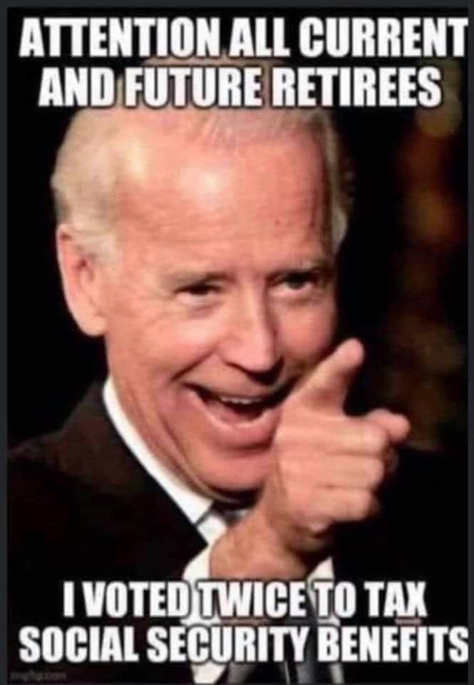 Never forget that Biden voted twice to tax seniors living on social security, money that was taxed from their wages and received back from those taxes. Biden’s own government salary, also paid by taxpayers, is not taxed.