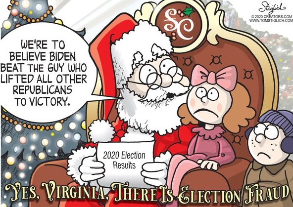 Joe Biden, who campaigned from his basement for six months, received fewer votes than Hillary in blue state cities, but more votes than the messiah Obama in swing states. How is that possible? If any liberal thinks (talk about an oxymoron) that he can make a case for that, then he is as stupid as he is foolish. Democrats like FOX News’ new attorney, Turley, analyzing the court cases keeps saying there aren’t enough votes to overturn the election results. Maybe not among the dead that voted, but there are millions of bogus ballots from so-called mail-in votes that should be disqualified. Fired CISA Director Krebs keeps parroting Obama claiming this was “the most secure election in history.” Maybe it was secure from Russia like all elections are since all they were found to have done was buy Facebook ads. But no election has been secure from Democrat operatives. What is secure about anonymous ballots without voter ID, mail-in or otherwise? What is secure about obstructing Republican observers? Liberals are ignorant of 99% of the facts in this investigation.